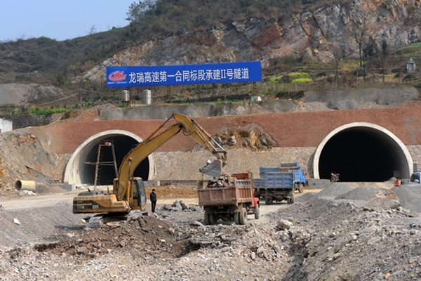 云南省龍瑞高速公路(龍陵至瑞麗)起于龍陵縣龍山卡,與保龍高速公路相連,途經芒市,止于瑞麗市姐勒,是國家高速公路網杭州至瑞麗公路的重要組成部分,也是云南重點推進的”四出境”國際大通道之一。龍瑞高速公路主線全長128.4公里,建設標準為雙向四車道,路基寬度為24.5米,設計行車時速80公里/小時;設計建設特大橋9座,大橋91座,隧道15座,概算總投資約107億元。