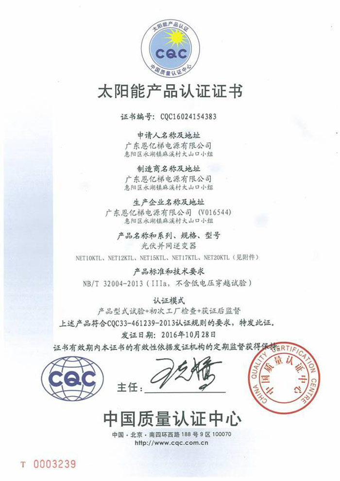 金太陽能產品認證(光伏逆變器)
