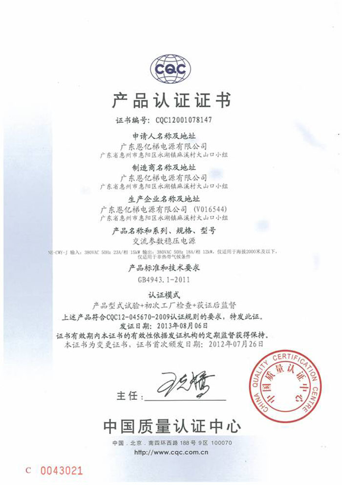 中國國家強(qiáng)制性產(chǎn)品認(rèn)證(交流參數(shù)穩(wěn)壓電源)